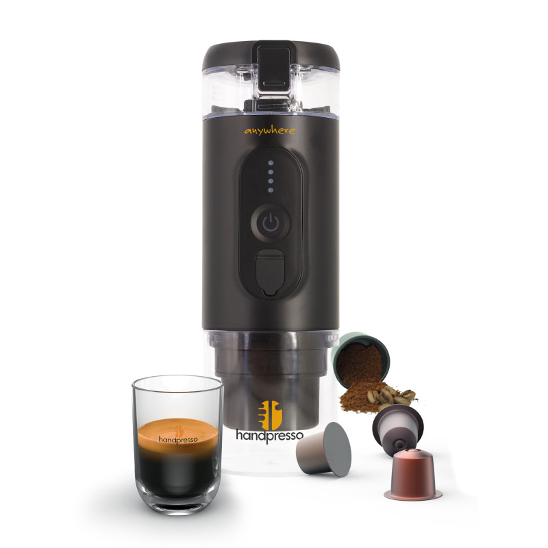 The new Handpresso portable coffee maker with battery. Recharges via USB.