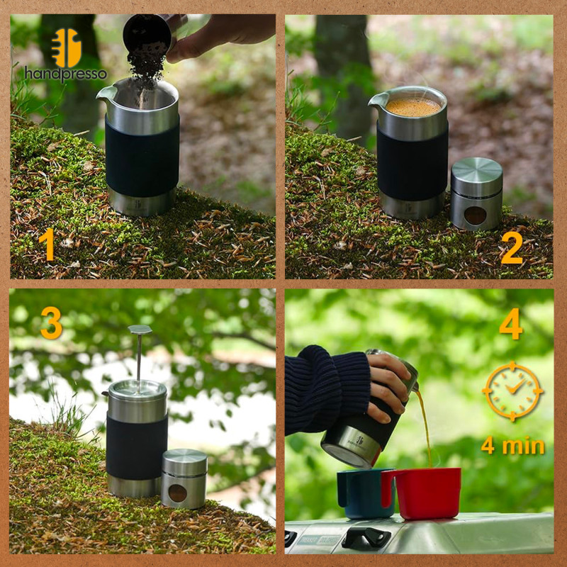 - Simple d’utilisation, la cafetière portable prépare un expresso parfait en 3 minutes 30