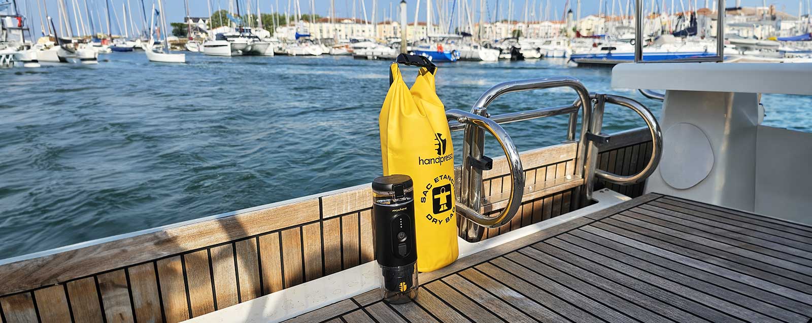 In mare, le macchine da caffè portatili Handpresso troveranno il loro posto su imbarcazioni di lusso come pure barche da pesca. Pur prendendo il sole sul ponte o riscaldandovi dopo la tempesta, le macchine da caffè portatili o le macchine da caffè 12v preparano il caffè di cui hai bisogno.
